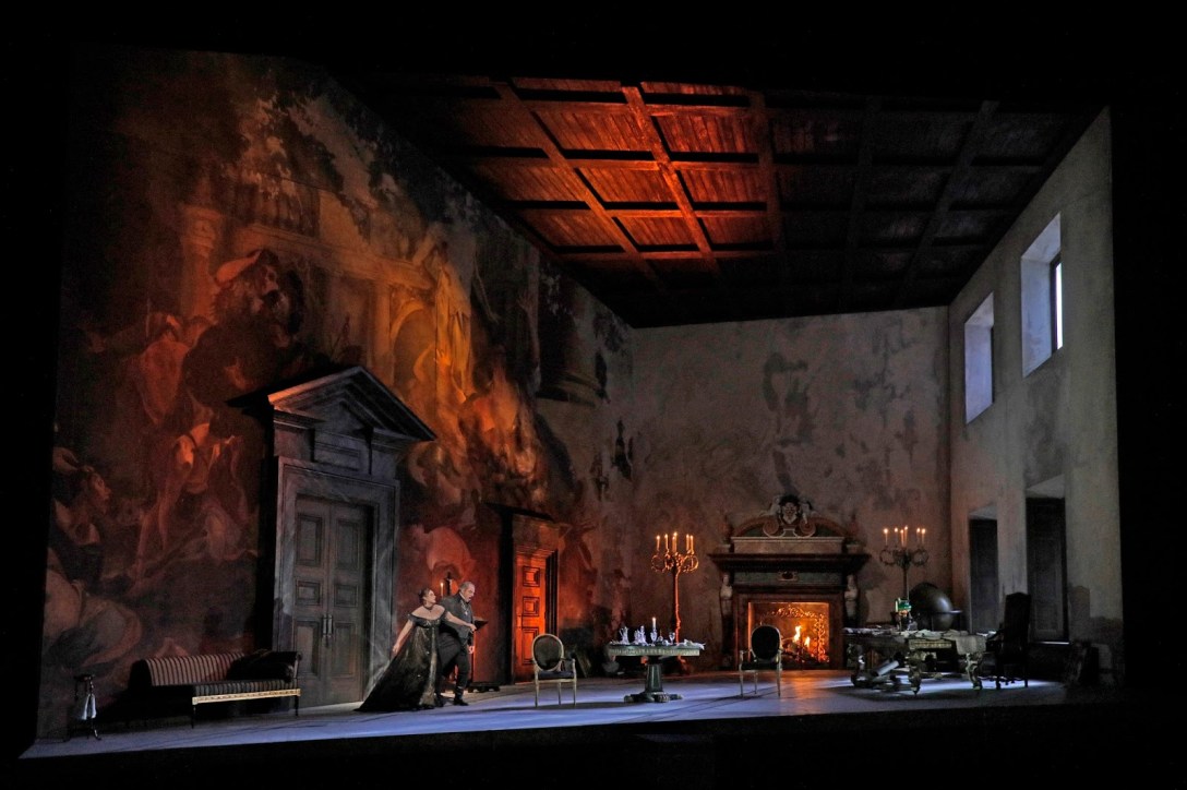 McVicar’s new staging is certainly attractive. The audience greeted John Macfarlane’s sets with applause, and rightly so; they’re elegantly composed and ornamented. There’s an impressionistic aspect to the way they employ color and texture, further accented by the painterly quality of David Finn’s lighting effects.