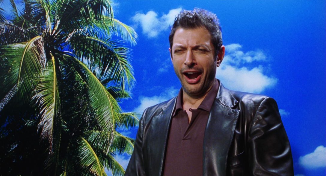 Here, the fodder is a young girl, brought to the island by extremely wealthy parents on a cruise. Spielberg spares us the undoubtedly horrifying images as she’s pecked to pieces by dinosaurs, but he lets us hear her screams and see the terrified face of her mother. The film then hilariously and chillingly smash cuts from the mother’s scream to Ian Malcolm (Jeff Goldblum) yawning in front of a poster in a subway station, as human-made an environment as has ever existed.